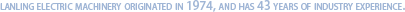 蘭菱機電 起源于1974年,至今已有44年行業(yè)經驗。